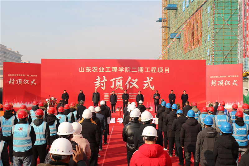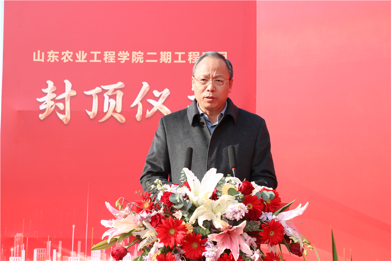 儀式上,淄博市項(xiàng)目建設(shè)工作專班副主任耿慶永,集團(tuán)黨委書記、董事長王彥宏,山東農(nóng)業(yè)工程學(xué)院黨委委員、副院長周吉鵬等領(lǐng)導(dǎo)致辭。山東農(nóng)業(yè)工程學(xué)院張鴻波書記宣布項(xiàng)目封頂。