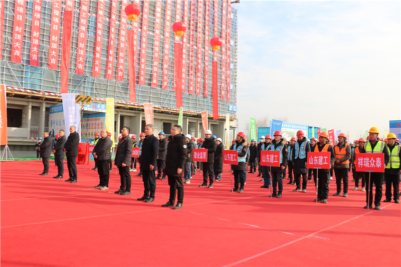 元月29日上午,集團(tuán)承建的山東農(nóng)業(yè)工程學(xué)院二期10號學(xué)生公寓喜封金頂。山東農(nóng)業(yè)工程學(xué)院黨委書記張鴻波,黨委委員、副院長周吉鵬;淄博市教育局黨組書記、局長孫英濤;淄博市項(xiàng)目建設(shè)工作專班副主任李詠芹、耿慶永;集團(tuán)黨委書記、董事長王彥宏,總會計師郭洪濤,副總經(jīng)理、三直屬公司總經(jīng)理宋吉鋒出席封頂儀式。