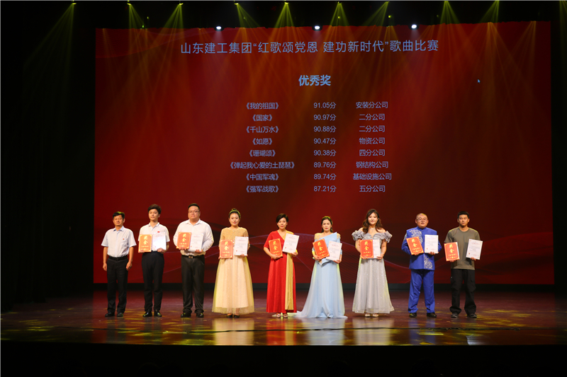 萬眾期待之中,活動第二階段——集團紅歌比賽決賽正式拉開大幕。預賽晉級的16支隊伍爭先拿出看家本領,演唱的《為了誰》《珊瑚頌》《我的祖國》《國家》《中國軍魂》《歌唱祖國》《向往》等膾炙人口的主旋律歌曲響徹會場,打動著每一位觀眾。他們不僅展示了過硬的歌唱實力、精巧的舞美編排和飽滿的精神狀態,更以富有感染力的歌聲抒發對黨和國家的無限深情,表達了堅定跟黨走的決心,向黨和國家獻上最誠摯的祝福,生動演繹著對集團成立45周年的喜悅之情。最終,集團機關合唱摘得桂冠;四分公司合唱、二直屬公司合唱獲二等獎;三直屬公司獨唱、三分公司合唱、基礎設施公司獨唱、五分公司獨唱、一分公司獨唱獲三等獎;安裝分公司合唱、二分公司合唱、二分公司獨唱、物資公司獨唱、四分公司獨唱、鋼結構公司獨唱、基礎設施公司合唱、五分公司合唱獲優秀獎。比賽在全員齊唱集團廠歌《新世紀的陽光》中閉幕。